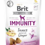 Brit Snack Funksional Imunitet Insekt është një snack funksional për qen me përmbajtje proteini insektesh dhe xhenxhefili për forcimin e imunitetit.