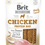 Brit Jerky Protein Bar Pulë me Proteinë Insektesh janë shkopinj të shijshëm të mishit të bërë nga pula dhe proteina e vlefshme e insekteve, të cilat ofrojnë qenve një burim cilësor dhe shumë të tretshëm të energjisë.