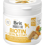 Brit Vitamins Biotin Kujdesi për Lëkurën dhe Pelushën ofron një kujdes të plotë për lëkurën dhe pelushin e qenve në formën e tabletave të shijshme. Falë përmbajtjes së biotinit, zinkut, vitaminave, barërave dhe mikroalgave, ndihmon në qetësimin e irritimeve, lehtësimin e simptomave të kruajtjes dhe mbështetje për pelushin e shkëlqyer. Është i përshtatshëm për përdorim të përditshëm dhe për kujdes të synuar në periudha të vështira.