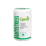 Canvit Antistress për Qentë dhe Macet është suplement ushqimor i dizajnuar posaçërisht për qen dhe mace të të gjitha racave, të cilët janë të ekspozuar ndaj stresit ose tregojnë shenja ankthi. Ai përmban një kombinim sinergjik të substancave natyrore – kanabis, kamomil dhe valeriana – të cilat kanë efekte qetësuese, dhe njëkohësisht e pasuron organizmin me tryptophan, vitamin B1 dhe vitamin C, të cilat kontribuojnë në balancimin e sistemit nervor dhe forcojnë qëndrueshmërinë ndaj situatave stresuese.Tabletat mund të jepen lehtësisht ditore sipas peshës së kafshës dhe janë të përshtatshme edhe për përdorim afatgjatë. Falë disponueshmërisë së lartë biologjike dhe përbërësve të zgjedhur me kujdes, produkti mbështet mirëqenien mendore të kafshës, lehtëson shenjat e stresit gjatë udhëtimit, ndryshimeve të mjedisit, vizitave te veterineri ose gjatë ankthit të ndarjes. Canvit Antistress ndihmon në përmirësimin e cilësisë së jetës së shokëve katërkëmbësh dhe është parandalim ideal ndaj pasojave afatgjata të stresit.