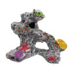 Ky dekor në formë shkëmbi pa korale krijon një pamje natyrale në akuarium duke imituar formacionet shkëmbore nënujore. Materiali i qëndrueshëm dhe ngjyrat natyrale e bëjnë të lehtë kombinimin me bimë artificiale ose natyrale dhe ofrojnë strehë për peshqit.
