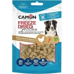 Trajtimet për qenët të ngrira me pule, karota dhe spinaq janë snacks me një proteinë, pa gluten të bërë duke i ngrirë për të ruajtur nutrientët dhe shijen, ideale për qenët me ndjeshmëri ushqimore.