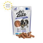 Snack-et për qentë Brit Let's Bite! janë me siguri të shijshme për aromën e tyre origjinale të mishit, por gjithashtu janë një burim i përshtatshëm plotësues i vitaminave dhe mineraleve që kujdesen për shëndetin e qenit tuaj. Në portofolin Let's Bite! mund të gjeni snacks nga lloje të ndryshme mishi, si dhe ato që janë të përshtatshme për qentë me sistem të ndjeshëm të tretjes ose alergji. Ka gjithashtu variante snacks funksionale për mbështetje të lëvizshmërisë, imunitetit, cilësisë së leshit, për qentë me mbipeshë dhe një gamë të snacks dentale. Snacks-et karakterizohen nga një tretshmëri e lartë, nuk kanë përmbajtje të lartë sheqeri dhe nuk janë të bazuara në drithëra. Kështu, ato nuk e mbushin shpejt stomakun e qenit dhe ai mund të përqendrohet më gjatë në stërvitje. Që snack-u të funksionojë si një mjet i përshtatshëm për stërvitje, është e rëndësishme që të shijojë qenit. Çdo qen ka preferenca të ndryshme kur bëhet fjalë për shijen, aromën, madhësinë dhe formën. Snacks-et Let's Bite! ofrojnë një gamë të gjerë, nga e cila çdo pronar do të zgjedhë ato më të përshtatshme për kafshën e tij të dashur.