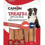 Shiritat e salmonit, snacks natyrale. Ushqim plotësues për kafshët shtëpiake për qentë e rritur. Formula pa gluten. Pa aditivë.